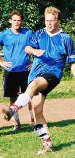 Der Trainer gibt noch ein paar Tipps: “Also, Daniel, der Ball ist weiß und rund!”